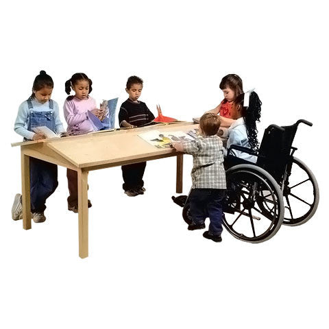 The All-Purpose Table is a highly versatile and functional addition to any educational setting. Whether used as a reading table in the library, a writing station in the literacy center, or a drawing table in the art center, this piece meets a wide range of classroom needs. Designed with a sloped tabletop and built-in book stops on each side, it helps keep papers and books securely in place during use. A convenient book well along the top offer's storage for books, writing utensils, or art supplies, making this table both practical and efficient. This unit is available in three sizes to meet the needs of learners of all ages. Each item sold individually