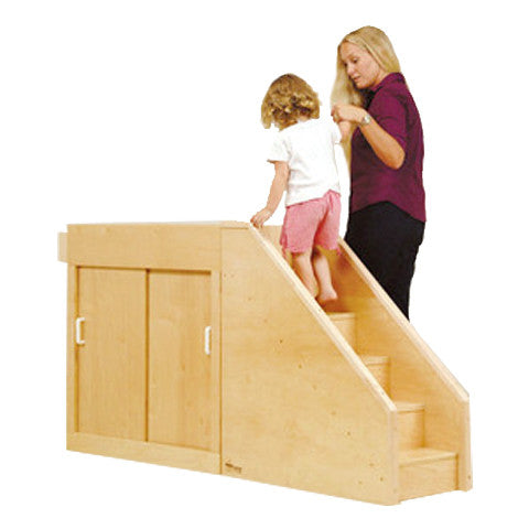 Built for safety, storage, and sanitation, the DeFoe Changing Table is a must-have for infant and toddler classrooms. It features a 3" high safety wall, an easy-to-clean melamine surface, and a convenient paper roll holder for quick changes. Double sliding doors provide access to a spacious storage area beneath, perfect for diapers, wipes, and other care essentials. Designed with daily use in mind, it’s both practical and durable. The matching step/storage unit is available separately.