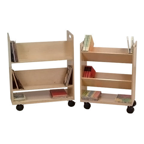 DeFoe Heavy-Duty Mobile Booktrucks are built to move large loads of books, CDs, and AV materials with ease. Outfitted with 5" double plastic locking wheels, these booktrucks glide smoothly even when fully loaded. Available in four functional models to suit your specific storage and display needs — from flat AV shelves to angled, double-sided displays — each one is constructed from durable materials for long-term, high-use environments like libraries and classrooms.