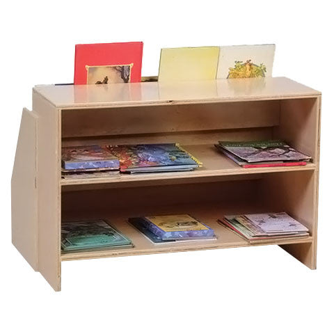 The DeFoe Library Combo Display Unit is a compact, dual-sided storage solution that brings books within easy reach. With four angled display shelves on the front and a two-level shelf on the back, it combines attractive presentation with functional storage. Holding up to 100 books, this unit encourages browsing while keeping your reading corner neat, organized, and inviting for young readers.