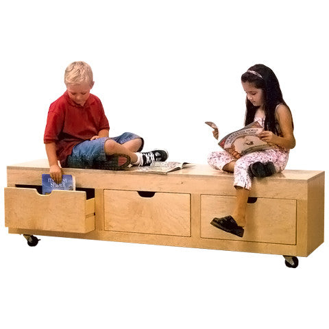 A creative solution born from a customer request, the DeFoe Rolling Storage Reading Bench combines seating, storage, and mobility in one kid-friendly unit. With space for multiple children to sit and read, plus three roomy 16” drawers underneath, it’s ideal for storing books, toys, or classroom supplies. Smooth-rolling rubber casters allow for effortless movement, and the bench even fits perfectly at a table as an alternative to individual chairs.