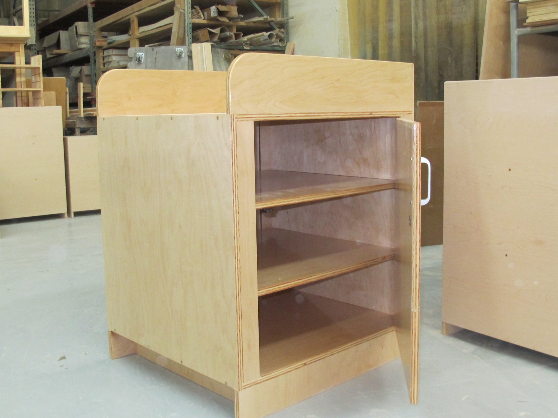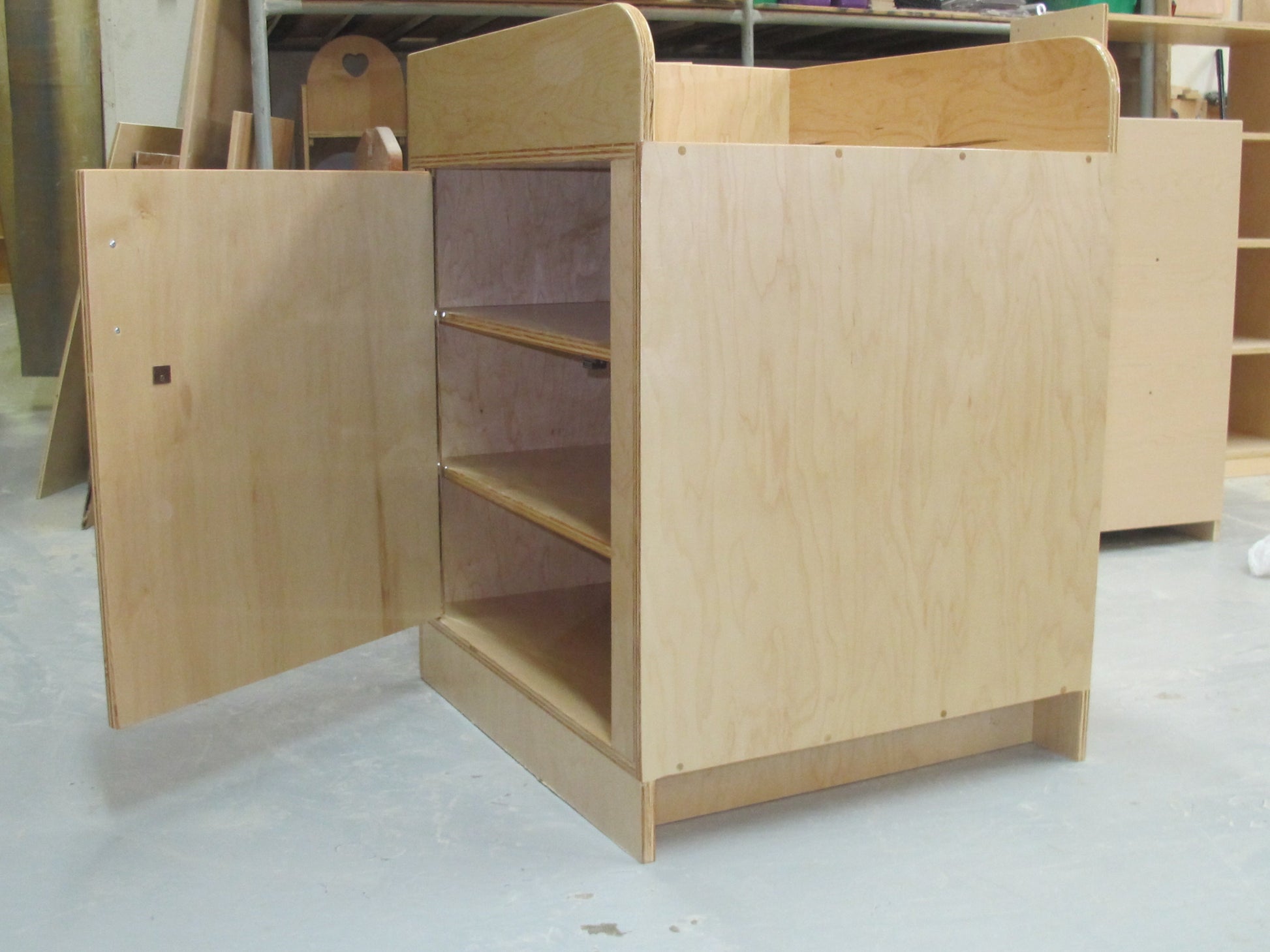 Changing table with a storage compartment underneath. Great for storing extra supplies like wipes and diapers!