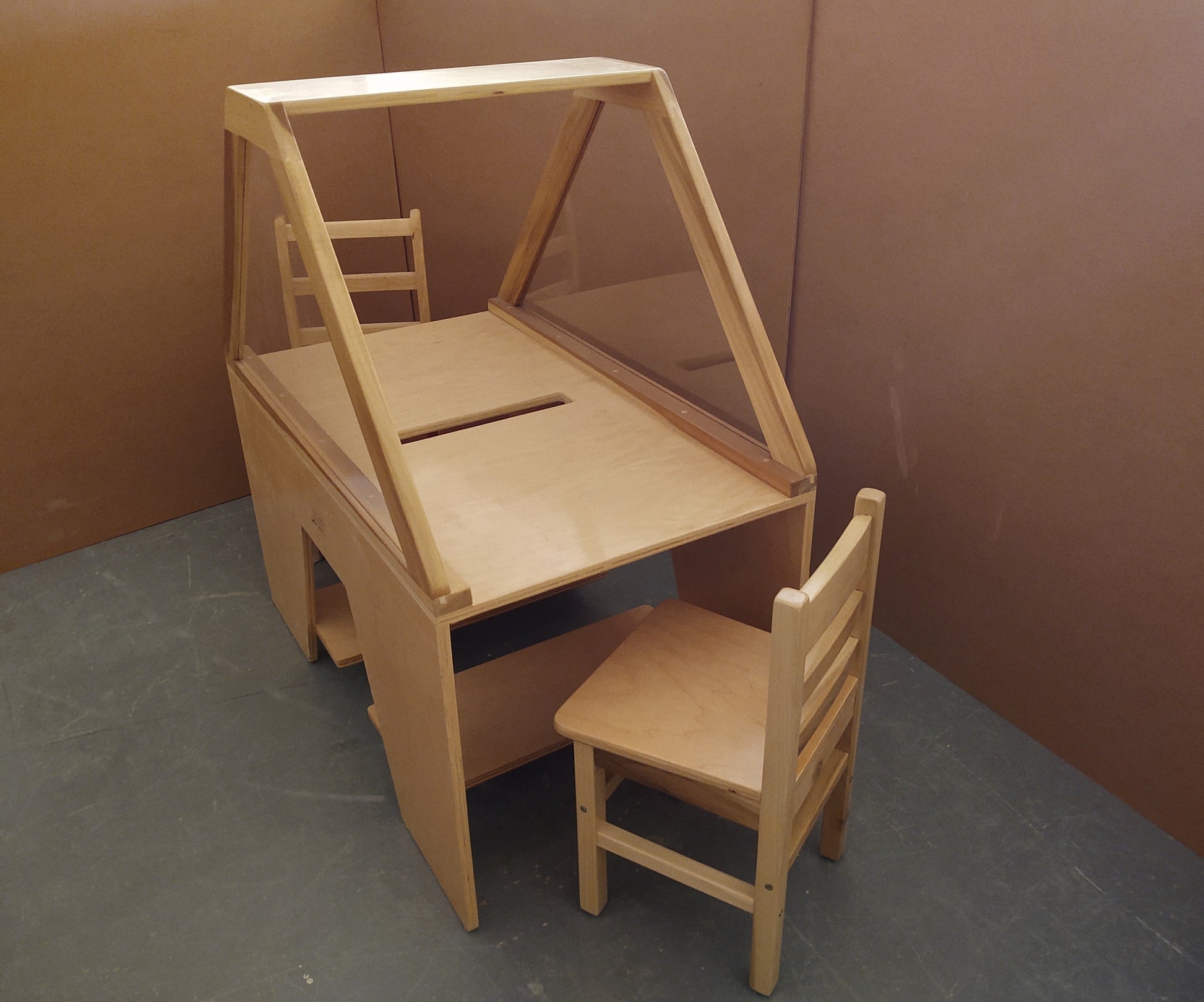 Is your school thinking about opening up but still has restrictions? We got you covered! Our new Social Distancing Desk comes with plexy glass side panels, and an optional middle plexy glass divider, to ensure that your little ones are visible and are not in direct contact with each other. Contact us for custom heights. Single student desk available upon request. Optional middle plexy glass divider fee.