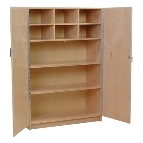 Keep your classroom organized with the DeFoe 5' Storage Cabinet — an efficient and flexible storage solution for supplies of all sizes. The cabinet features three adjustable shelves on aluminum tracks, allowing you to tailor the space to fit books, bins, or teaching materials. Six built-in upper cubbies offer additional organization for smaller items. Compact yet spacious, this cabinet is perfect for classrooms that need storage without sacrificing floor space.