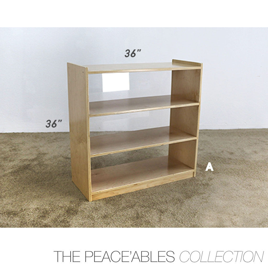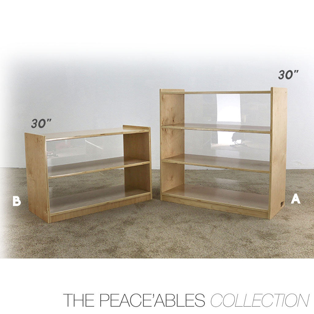 Organize your classroom materials in style with our straight shelving unit. Lined with our child safe plexy glass, the backing provides support for books and provides easy to find viewing. Designed with our Piece’ables Collection in mind. Also looks great as a stand-alone! Products can be ordered with open back or with a plexy glass back.