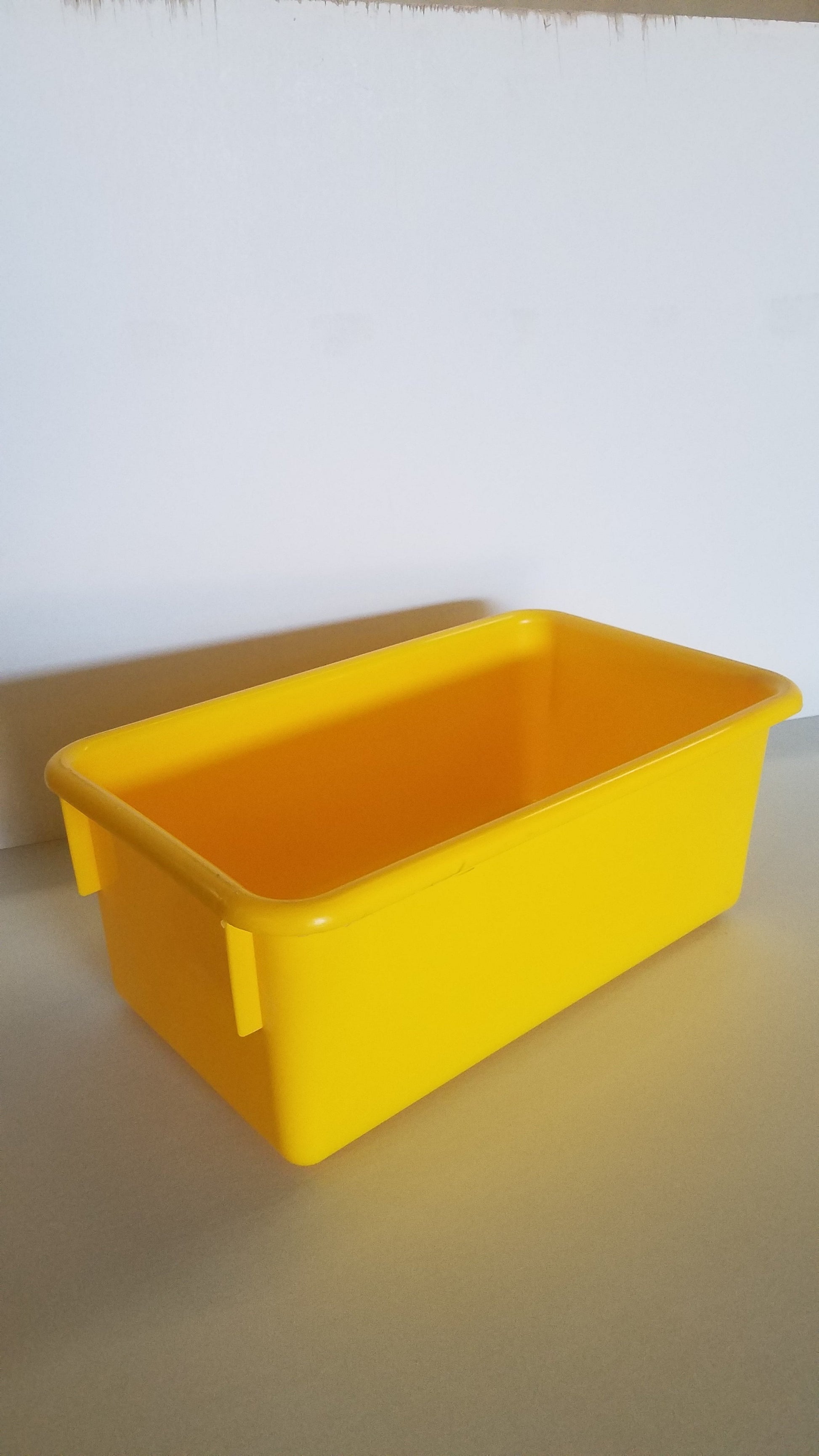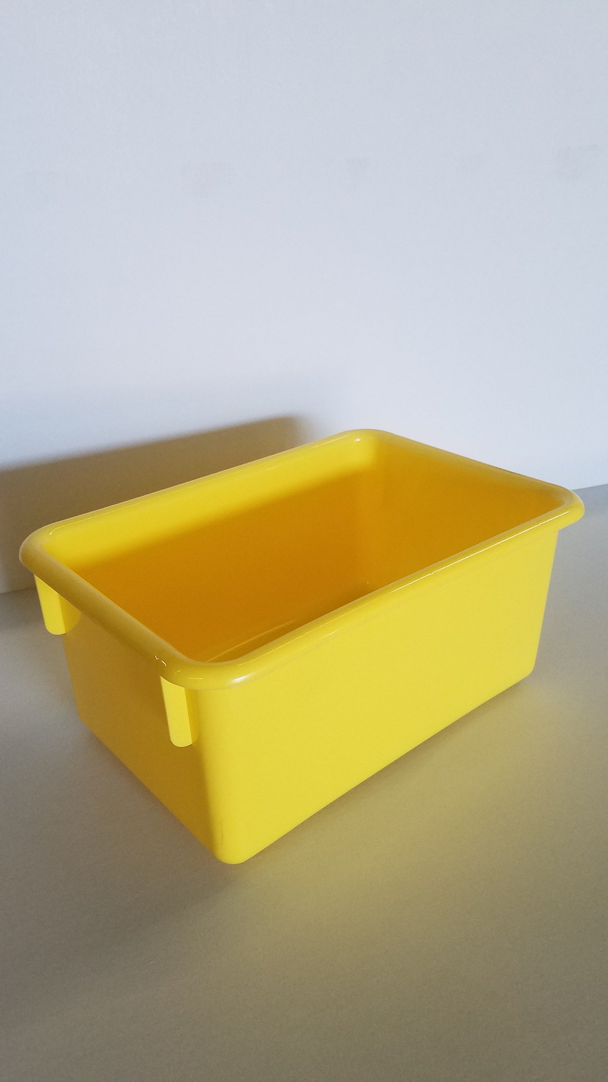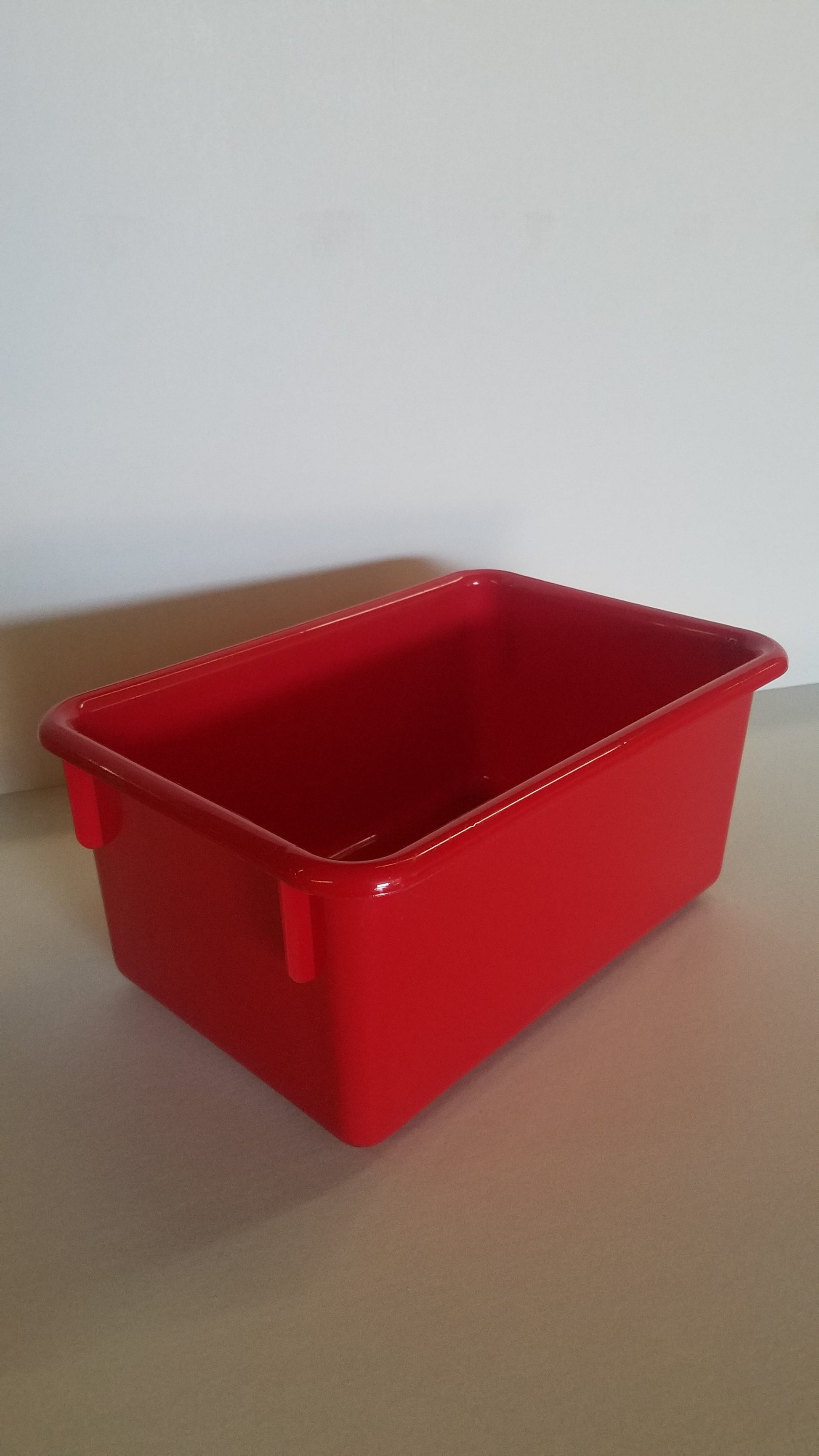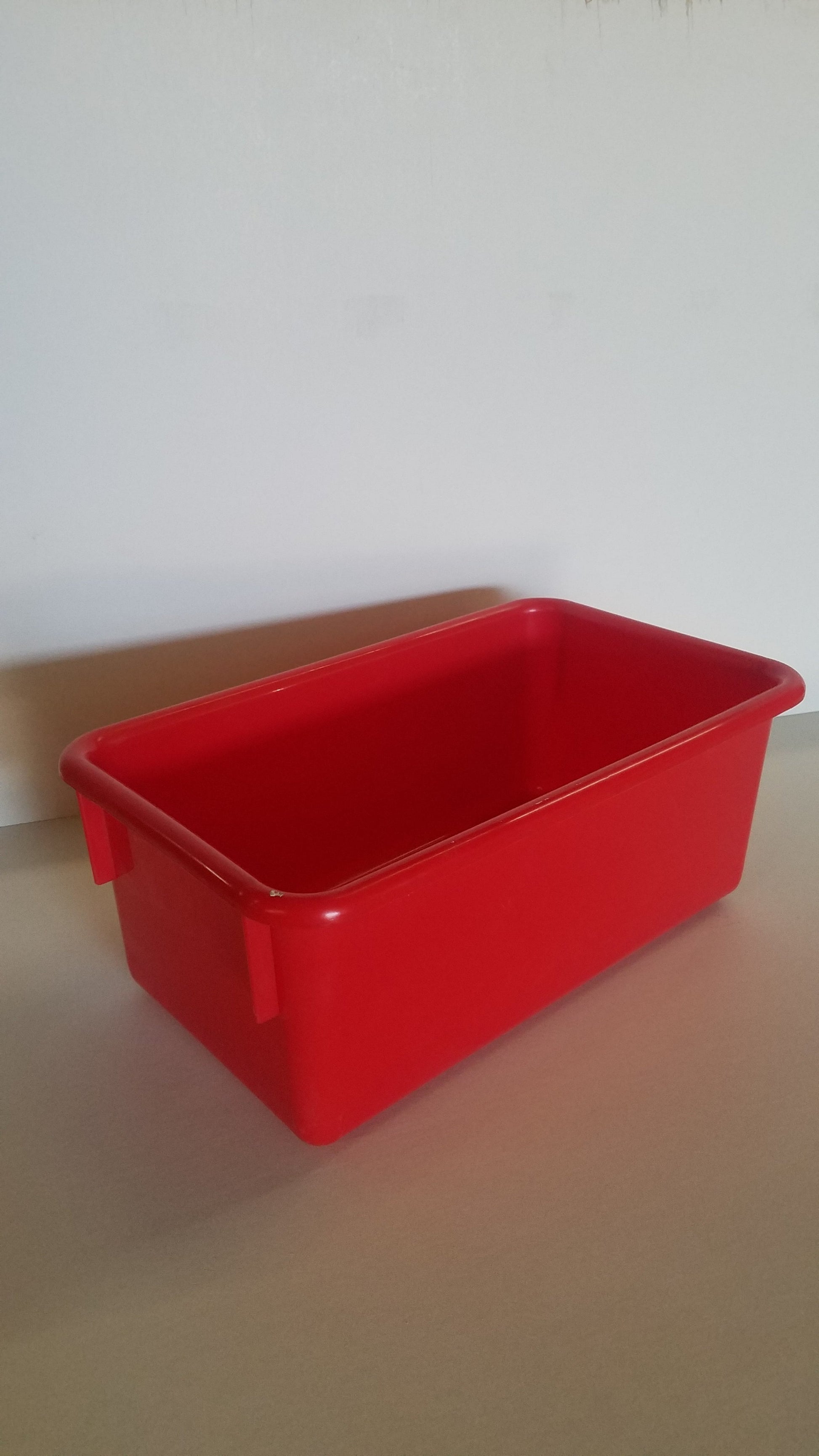 These tubs are great for our cubby units. They're great for putting almost anything your little ones need to put away. The tubs are available in red, green, blue, and yellow.