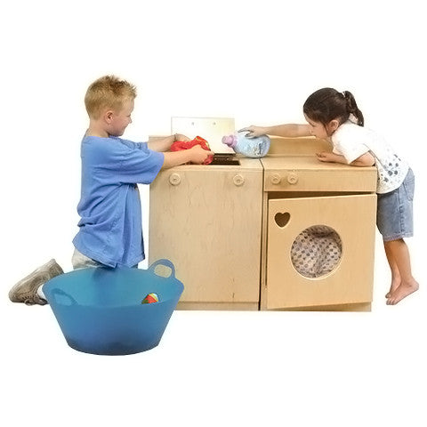Let kids bring their imaginative home play to life with the Defoe Play Washer. This sturdy top-loading washer is built just like the real thing—featuring turning knobs, a hinged lid, and an easy-grip handle for little hands. Whether used on its own or paired with other Defoe dramatic play kitchen pieces, this washer encourages creativity, responsibility, and fun during pretend laundry time. Perfectly sized for young learners and built to withstand years of play in any early childhood setting.