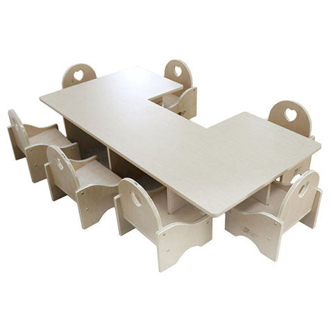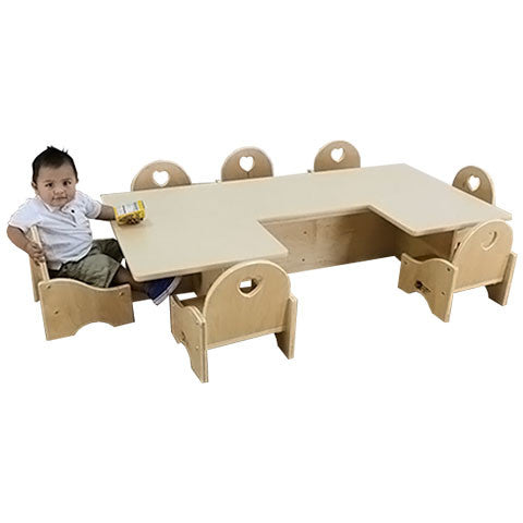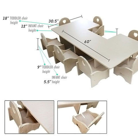 This one of a kind design is a practical choice for youngsters who like to wiggle around at food time! Not only does it make food time more fun, the teacher has a birds eye view of all the kids while they safely enjoy their meal. The Infant/Toddler Chairs lock onto the Infant/Toddler Feeding Table as an added safety feature!